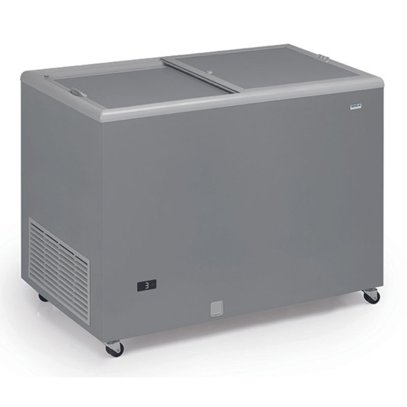 Treat yourself now to the Chest Freezer for Ice Cream from TEFCOLD to meet all your storage and display needs. Its quality and features make it a wise choice for kitchen professionals. Don't miss this opportunity to equip yourself with a high-performance and aesthetic freezer to showcase your ice creams and frozen products. The ST range of chest freezers with glass lids is ideal for storing and displaying ice creams and frozen products in small stores. It is equipped with a double-glazed opening lid and aluminum frame for easy access and a perfect view of the products. It features a sleek design, a static cooling system, and wheels for easy mobility.