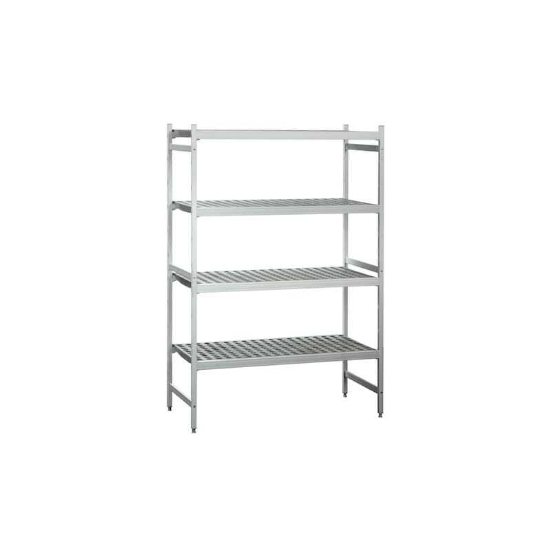 Ideal for catering professionals, this Modular Corner Shelving 4 Levels in aluminum and polypropylene measures 1251mm in length, 500mm in depth, and 1750mm in height. Standard models are available in depths of 400mm and 500mm. Six sizes are available for both straight-line and corner models.