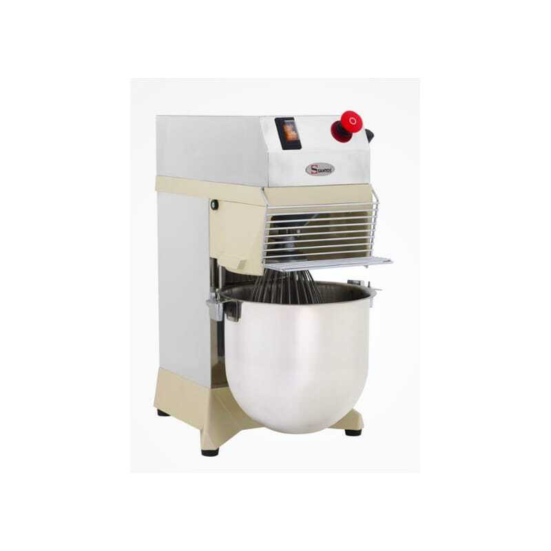 Idéale pour les professionnels de la restauration, cette Batteur Planétaire convient à une utilisation intensive dans les restaurants et les cantines. Le corps est entièrement réalisé en métal résistant pour faciliter le nettoyage et l'utilisation de la montée et de la descente du bol. L'arrêt de sécurité se déclenche si le bol ou l'écran de protection ne sont pas correctement mis en place. Livré avec bol, fouet, crochet et palette. Le bol passe au lave-vaisselle. Ne convient pas pour le pain et la pâte à pizza. Attention à respecter les capacités indiquées (10L : 2kg de farine / 3kg de pâte). Il a une vitesse de 108 -195 - 355 tr/min.