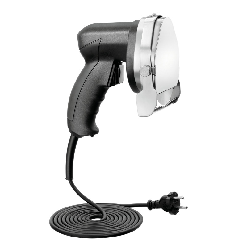 Ce Couteau Kebab Electrique en Inox et Aluminium est idéal pour les professionnels de la restauration. Efficace, il vous permet de trancher tous les types de viandes rôties telles que : kebab, shoarma, gyros etc. Il possède un grand disque à trancher lisse de 80 mm de diamètre avec une protection en acier inoxydable. Ce dernier a une vitesse de 8 000 tours par minute.